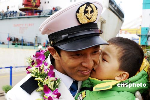 背景資料:2008年12月17日在亞丁灣海域索馬里,在貨輪遭到海盜登船襲擊之際,30名中國船員機智勇敢地用高壓水槍和自制燃燒彈擊退來犯者。隨著他們所在的“振華4號”輪返航上海,英雄船員勇斗海盜的傳奇故事再度成為矚目焦點。