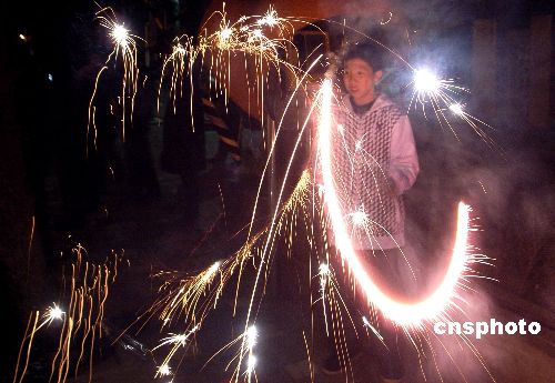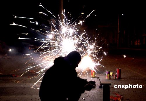 一月二十六日零時,北京民眾紛紛走出家門燃放煙花爆竹慶賀新年。中新社發(fā) 廖攀 攝