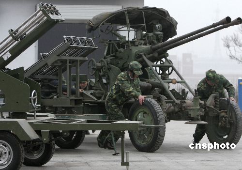 2月1日傍晚,河南洛陽(yáng)孟津縣人工影響天氣作業(yè)基地的工作人員移動(dòng)高炮和火箭發(fā)射架進(jìn)入作業(yè)狀態(tài)。當(dāng)晚11:50及2日凌晨5:00,除偃師市和汝陽(yáng)縣因天氣條件不具備而沒有實(shí)施作業(yè)外,其他7縣均實(shí)施了多批次人工增雨雪作業(yè),共發(fā)射火箭彈120枚,炮彈200發(fā),作業(yè)區(qū)內(nèi)普降小雨,有效緩解了當(dāng)?shù)厣只痣U(xiǎn)等級(jí),也使旱情得到了些許緩解。中新社發(fā) 張曉理 攝