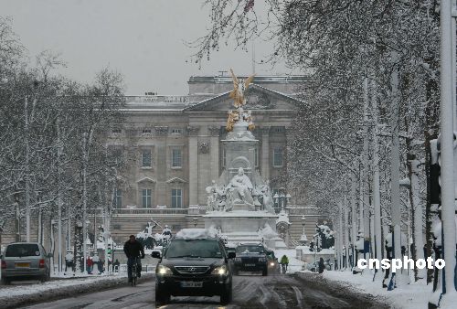 英國(guó)自1日下午起開(kāi)始降雪,至2日早晨已經(jīng)成為十八年最嚴(yán)重的暴雪。惡劣天氣使公共交通陷入停頓或癱瘓,首都倫敦的公交車(chē)停駛,地鐵線也陷入混亂狀況。圖為大雪中的英國(guó)王宮白金漢宮。