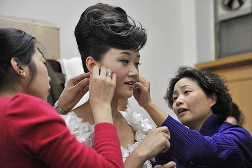 2009年春晚女星比艷,宋祖英、董卿、黃圣依春晚試裝及服裝制作過程首度曝光。宋祖英的禮服 最為富貴,全身繡滿珍珠。