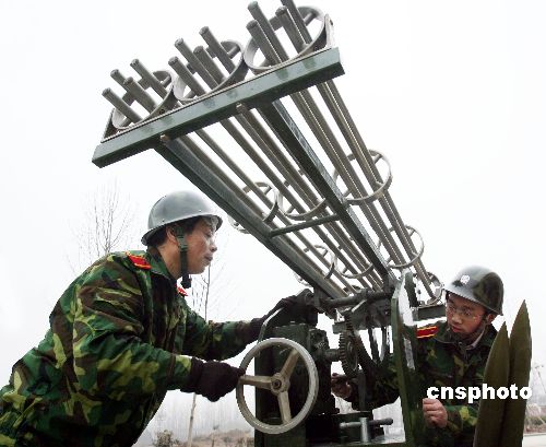 2月3日下午,安徽淮北人工影響天氣作業(yè)基地的工作人員移動火箭發(fā)射架進入作業(yè)狀態(tài)。當日,淮北氣象臺舉行名為“閃電”人工催雨演練,以備戰(zhàn)可能形成催雨作業(yè)天氣條件的人工降雨。目前,安徽省遭遇特大旱情,安徽省氣象臺2月1日10時發(fā)布干旱紅色預警,預計未來一周淮河以北地區(qū)有60%以上農作物受旱。