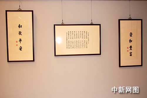 臺(tái)灣法鼓山創(chuàng)辦人圣嚴(yán)法師三日?qǐng)A寂,四日移靈金山法鼓山世界佛教教育園區(qū)大殿供信眾瞻仰,圖為法鼓山現(xiàn)正展出的圣嚴(yán)法師墨寶。中新社記者:陳立宇 攝