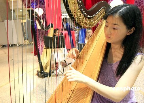 圖:豎琴名家為香港情人節(jié)活動助興