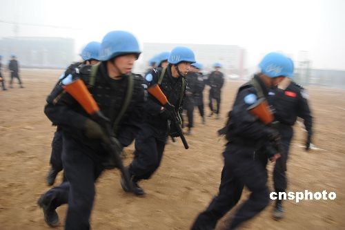 圖:中國赴海地維和警察防暴隊(duì)冒雨訓(xùn)練(3)