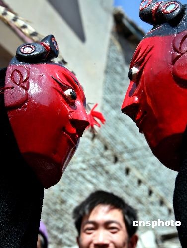 2月12日是農(nóng)歷正月十八,貴州省安順市西秀區(qū)吉昌屯舉辦隆重的“抬汪公”活動,是屯堡村寨每年最隆重的活動之一,四鄉(xiāng)八寨的村民都會來到汪公祠堂燒香拜祖神,祭祀汪公!疤艄笔峭捅と俗孑厒鞒械闹匾⒌洹C磕暾率璩,屯堡人就把紅面長須身穿官袍的“汪公”他老人家從平日香火侍奉的“汪公廟”里請出,端放在一個紅錦緞扎成的轎子里,由全屯最有威望的老人引路,轎前有儀仗隊(duì)鳴鑼開道,轎后跟隨高妝彩車、蓮船、地戲隊(duì),前呼后擁,游鄉(xiāng)串寨,熱鬧非凡。中新社發(fā) 彭年 攝