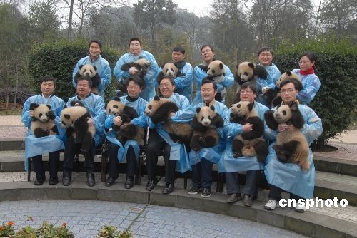 圖:震后臥龍出生的13只熊貓寶寶搬進新家(4)
