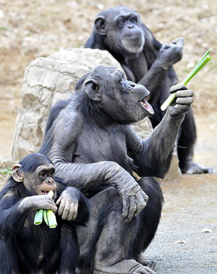 趣圖:動(dòng)物園里黑猩猩吃大蔥預(yù)防感冒(3)