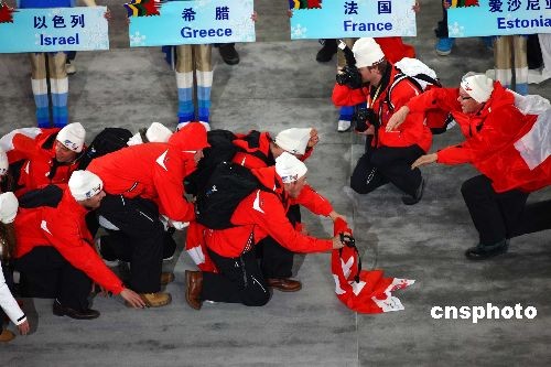圖為在開幕式上瑞典代表團以獨特的方式入場。中新社發(fā) 富田 攝