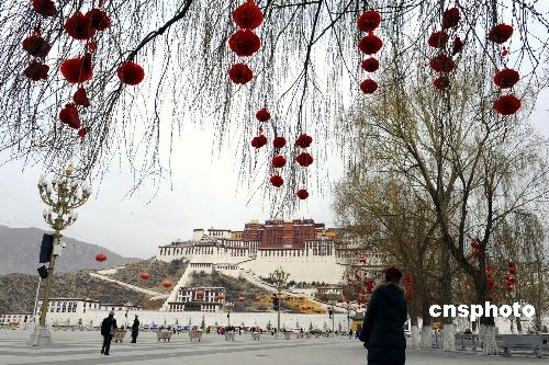 2月23日,西藏自治區(qū)首府拉薩市布達拉宮廣場張燈結(jié)彩喜迎藏歷新年,高原古城拉薩洋溢著濃郁的節(jié)日氣氛。中新社發(fā) 廖攀 攝