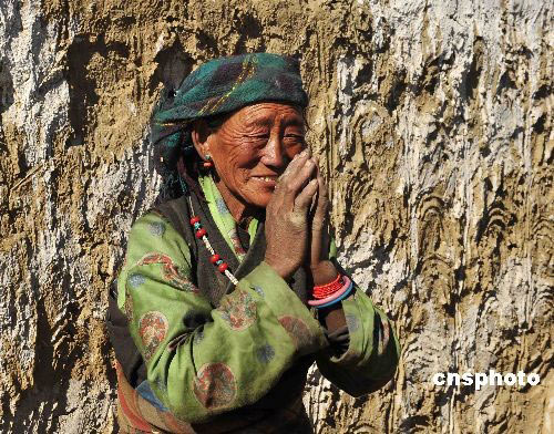 藏歷新年即將到來之際(2月25日為藏歷大年初一),駐藏空軍部隊醫(yī)務人員深入農(nóng)戶義務巡診。圖為老阿媽一直把官兵們送到大門外,不停地說:“謝謝親人金珠瑪米(解放軍)。中新社發(fā) 郭超英 攝