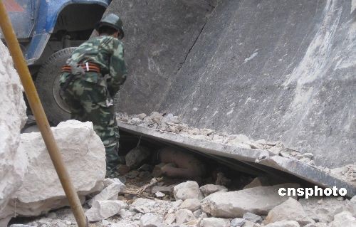 圖為消防員在一輛被砸爛的大貨車下發(fā)現(xiàn)最后一名被困人員的遺體。