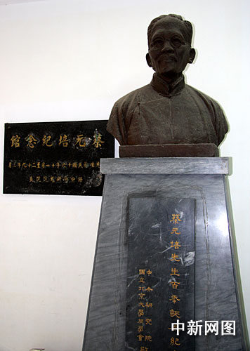 圖為臺(tái)北“中央研究院”蔡元培紀(jì)念館中的蔡元培塑像,由“中研院”原北京大學(xué)同學(xué)會(huì)敬立。蔡元培曾任北京大學(xué)校長(zhǎng)、“中研院”院長(zhǎng)。陳立宇 攝