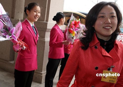 3月2日下午,出席十一屆全國人大二次會議的上海代表團抵達北京,“打工妹代表”朱雪芹表示,面對金融海嘯沖擊,她最關心農(nóng)民工就業(yè)問題。中新社發(fā) 任晨鳴 攝