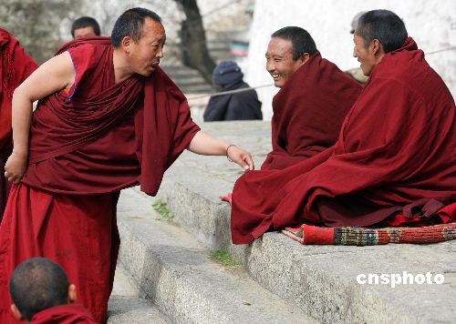 3月4日,藏歷新年正月初八,拉薩色拉寺舉行傳昭大法會(huì),僧人們會(huì)進(jìn)行傳統(tǒng)的辯經(jīng)、祈愿、頌經(jīng)等佛事活動(dòng)。每年的傳昭大法會(huì)從藏歷正月初八開始,持續(xù)到藏歷正月十五。圖為在色拉寺大殿前舉行的僧人辯經(jīng)活動(dòng)。中新社發(fā) 劉震 攝