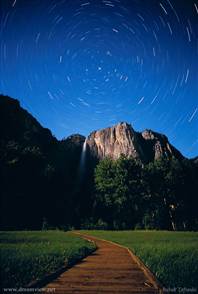 “夜空下的世界”項(xiàng)目中的許多照片都需要長(zhǎng)時(shí)間的曝光。要想順利拍攝這些照片,往往需要機(jī)會(huì)和技巧。這幅群星環(huán)繞北極星的照片就是拍攝于加州約塞米蒂國(guó)家公園的上空。北極星屬于小熊星座,距離地球約400光年,是夜空能看到的亮度和位置較穩(wěn)定的恒星。北極星是天空北部的一顆亮星,離北天極很近,差不多正對(duì)著地軸,因此從地球上看,它的位置幾乎不變,人們可以用它來辨別方向。