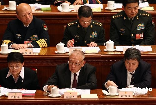 3月5日上午,十一屆全國人大二次會(huì)議在北京人民大會(huì)堂開幕。全國政協(xié)副主席、前香港特首董建華(下排中)列席。中新社發(fā) 杜洋 攝