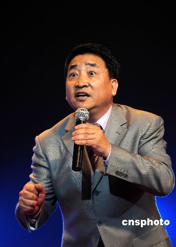 全國政協(xié)委員、著名相聲表演藝術(shù)家姜昆表演相聲。中新社發(fā) 宋健浩 攝