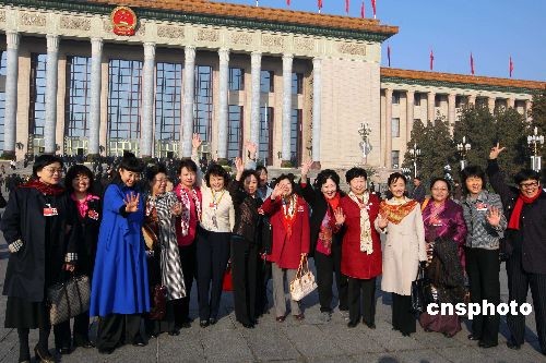 3月8日,全國政協(xié)十一屆二次會(huì)議第三次全體會(huì)議在北京人民大會(huì)堂舉行,參加會(huì)議的女委員在大會(huì)堂前合影,慶祝國際婦女節(jié)。中新社發(fā) 盛佳鵬 攝
