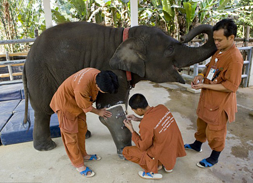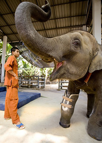 圖:大象被炸斷腿 安假肢后行動(dòng)自如(2)