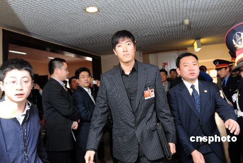 3月11日上午,全國政協(xié)體育界別委員駐地,劉翔準備進入會場參加小組討論。這是劉翔當選全國政協(xié)委員兩年來首次參加小組討論。