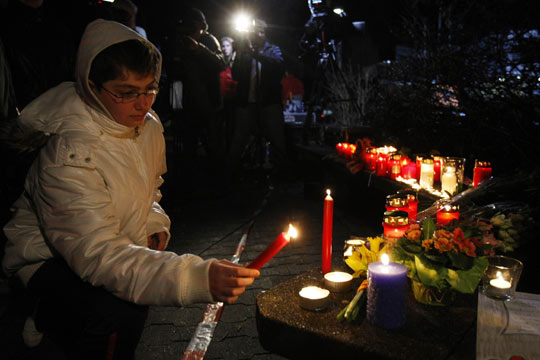 德國總理默克爾和德國聯(lián)邦政府對這起校園槍擊案“感到震驚”,對遇難者家屬表示慰問。默克爾當天在新聞發(fā)布會上說,11日是全德國的“哀悼日”。 圖為群眾正在悼念校園槍擊案的亡者。