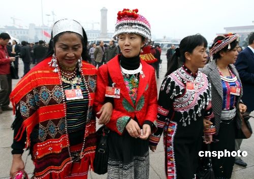 圖:少數(shù)民族委員盛裝步入大會(huì)堂(2)