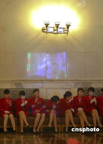 3月12日,全國政協(xié)十一屆二次會議舉行閉幕大會。大會開始前,服務(wù)人員在人民大會堂的椅子上休息。中新社發(fā) 盛佳鵬 攝