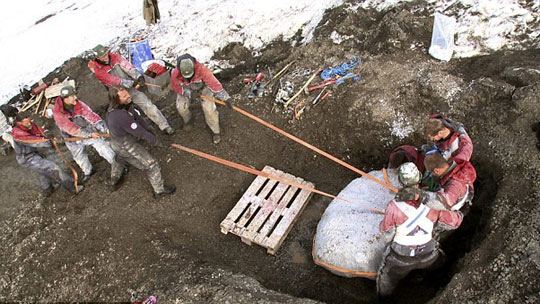 挪威古生物學(xué)者許魯姆率領(lǐng)的考察隊(duì),在挪威斯瓦爾巴群島發(fā)掘一具生存于距今1.5億年前侏羅紀(jì)時(shí)期的一只長達(dá)15米的古老爬行動(dòng)物的化石。