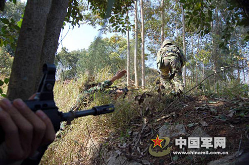 連日來,南京軍區(qū)某團“青州連”充分貫徹新大綱的新思想、新規(guī)定,堅持從難從嚴(yán)從實戰(zhàn)出發(fā)摔打部隊,全連官兵戰(zhàn)術(shù)觀念樹得牢,戰(zhàn)場觀念強。訓(xùn)練中,他們積極探索野外條件下作戰(zhàn)新方法,他們還特意選擇野外近似實戰(zhàn)的地形環(huán)境,從嚴(yán)摔打和錘煉官兵的快速反應(yīng)能力,從而促進了訓(xùn)練質(zhì)量和效益的提高。圖為該連3月15日該團組織官兵進行野外課目訓(xùn)練的場景。