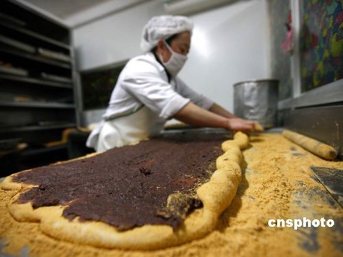 圖為面點(diǎn)廚師正在加緊制作。中新社發(fā) 富田 攝