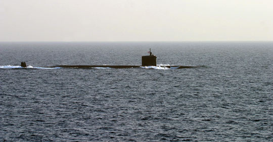圖:美軍核潛艇與運輸艦相撞 致大量泄油(2)