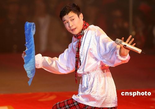 2009年3月20日,小沈陽現(xiàn)場演出會“小沈陽之夜”在濟南舉行。小沈陽和他的親密搭檔——妻子沈春陽在山東省體育館為觀眾奉獻一臺精彩的演出。中新社發(fā) 王鋒鋒 攝