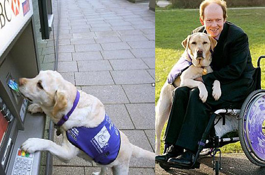 拉布拉多犬車禍救主人 會用ATM機(jī)。據(jù)英國媒體3月14日的報(bào)道,在英國漢普郡,前皇家海軍官員艾倫□帕頓同一只拉布拉多犬生活了近12年。這只拉布拉多犬不僅在一場車禍中挽救了主人帕頓的性命,而且還是一位幫他做家務(wù)的好手。據(jù)悉,這只拉布拉多犬名叫昂德(Endal)。在日常生活中,它會認(rèn)真幫助主人做家務(wù),如清空洗衣機(jī)中的衣服和前往商店購物。在主人的調(diào)教下,拉布拉多犬昂德還會熟練操作自動取款機(jī)取出固定數(shù)額的錢,郵寄信件,以及遞送手機(jī)。