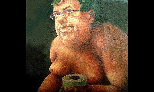 日前,愛爾蘭總理布賴恩·考恩再次遭遇尷尬,一位匿名的愛爾蘭藝術(shù)家創(chuàng)作了兩幅極具諷刺意味的“半裸考恩”畫,并將這兩幅畫在愛爾蘭兩個最負聲望的畫廊中展出。