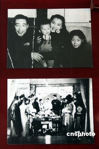 4月2日,上海福壽園“祭先烈、敬先賢、憶先人”清明月紀(jì)念展開(kāi)幕,百余位建國(guó)英雄、名人精英、藝術(shù)大師的生平資料和實(shí)物史料亮相。圖為上世紀(jì)三十年代“電影皇帝”金焰與著名電影藝術(shù)家秦怡的結(jié)婚場(chǎng)景照(下圖)以及他們夫婦與孩子的合影(上圖)首次公開(kāi)展覽。金焰,1910年出生于韓國(guó)漢城,代表作品《風(fēng)流劍客》、《野草閑花》、《一剪梅》等。1948年金焰與秦怡結(jié)婚。1983年金焰離開(kāi)人世。 中新社發(fā) 潘索菲 攝