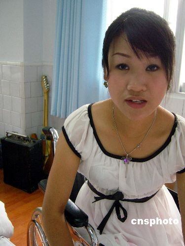 四川省人民醫(yī)院康復(fù)中心有很多因去年地震而遭遇截肢的康復(fù)病人,5月8日,來自安徽的雙腿截肢女孩李應(yīng)霞暢談她的夢想,身后的墻角放著她特意叫父親從廢墟中挖出的吉他和音箱。李應(yīng)霞今年22歲,當年為了母親的腰病和姐妹的學業(yè),14歲的她跟叔叔一起來到四川都江堰,在啤酒長廊靠唱歌謀生并向家中寄錢,異鄉(xiāng)的漂泊一直延續(xù)到災(zāi)難發(fā)生。中新社發(fā) 翁陽 攝