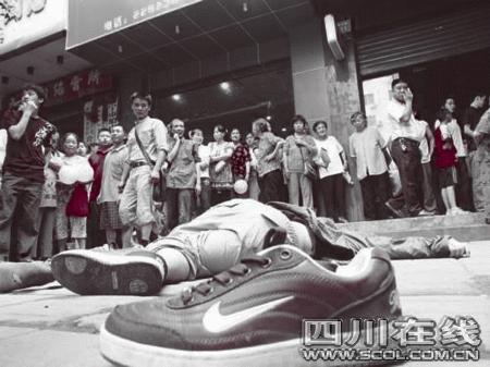 遂州中路是遂寧的繁華街道,現(xiàn)場(chǎng)很快聚集了很多圍觀市民。圍觀市民看見:躺在地上的死者很像一個(gè)高中生,年齡十八九歲,右手挽有一黑色雙肩背包!25日是高考成績(jī)公布的日子,這個(gè)人又像高中生,是不是他沒考好而跳樓自殺哦!薄鞍!榜上無名,腳下有路,再怎么說也不應(yīng)該走這條路呀!”圍觀市民議論紛紛,“高考生跳樓”的消息不脛而走。