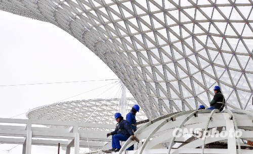 2010年1月22日,作為世博會(huì)“一軸四館”永久場館之一的世博軸工程正式竣工,這標(biāo)志著世博建設(shè)邁入新階段。世博軸是由地上二層、地下二層組成的立體交通樞紐,長約1045米,寬約130米,總占地面積約13萬平方米,總建筑面積25.1萬平方米,地下空間建筑面積約19萬平方米,地上建筑面積約6.1萬平方米。世博軸工程是2010年上海世博會(huì)的主入口和中央人行立體交通樞紐,是本屆世博會(huì)的地標(biāo)性建筑。世博軸工程的竣工標(biāo)志著工程建設(shè)階段的完成,即將邁入運(yùn)營準(zhǔn)備階段。預(yù)計(jì)4月15日之前完成運(yùn)營人員培訓(xùn)、功能用房和商業(yè)裝修。并計(jì)劃4月15日-4月底進(jìn)行試運(yùn)營。中新社發(fā) 沈春琛 攝