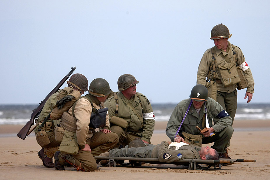 美英法等國士兵穿上二戰(zhàn)時期軍服在法國諾曼底海灘舉行“登陸戰(zhàn)”紀念諾曼底登陸65周年。