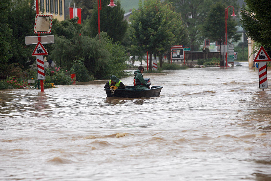 6月24日,奧地利部分地區(qū)由于連日降雨發(fā)生洪災。當地消防人員緊急出動,用各種工具將災民運往安全地帶。