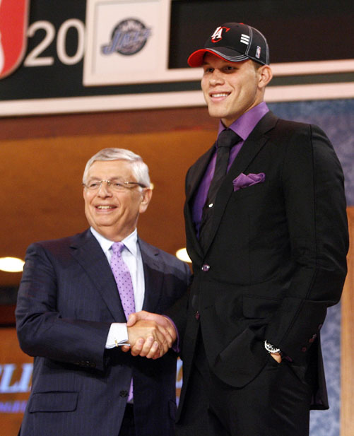 NBA總裁大衛(wèi)·斯特恩祝賀獲得“狀元秀”的布雷克·格里芬。