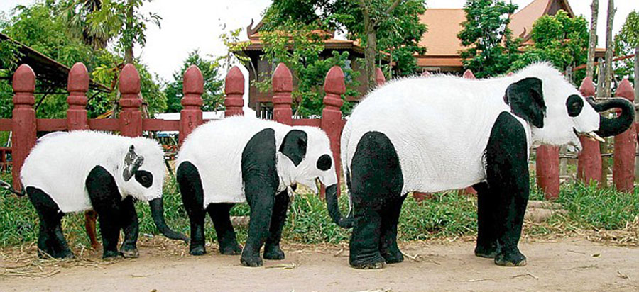泰國(guó)大象扮熊貓