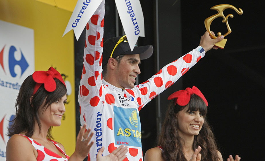 圖為“爬坡王”康塔德身著斑點衫慶祝瞬間。