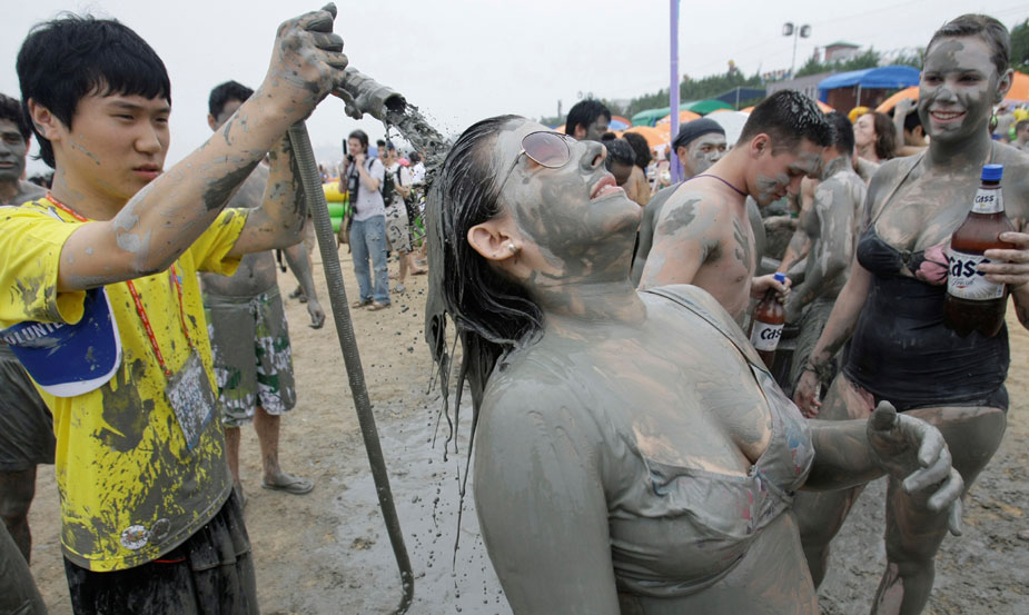 7月11日,韓國第12屆保寧美容泥漿節(jié)泥巴大戰(zhàn)在大川海灘舉行。