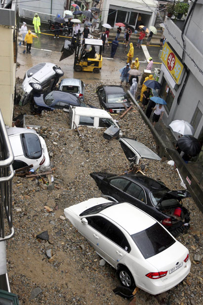 釜山暴雨引發(fā)泥石流
