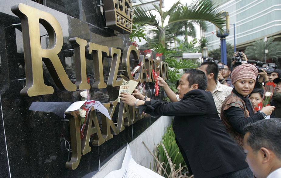 7月18日,印度尼西亞首都雅加達(dá)的民眾紛紛來到發(fā)生爆炸的萬豪酒店和麗嘉酒店,向死難者獻(xiàn)花表示哀悼。