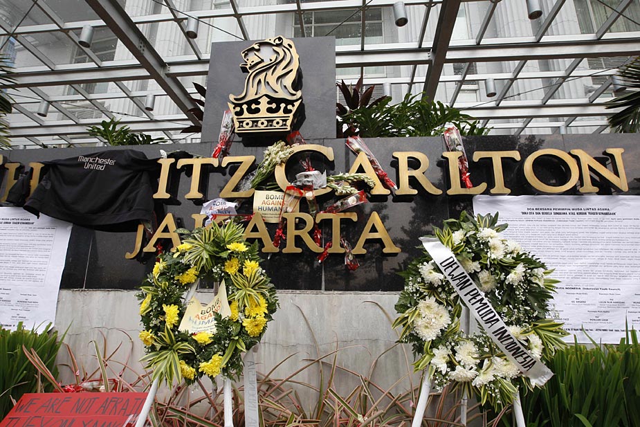 7月18日,印度尼西亞首都雅加達的民眾紛紛來到發(fā)生爆炸的萬豪酒店和麗嘉酒店,向死難者獻花表示哀悼。