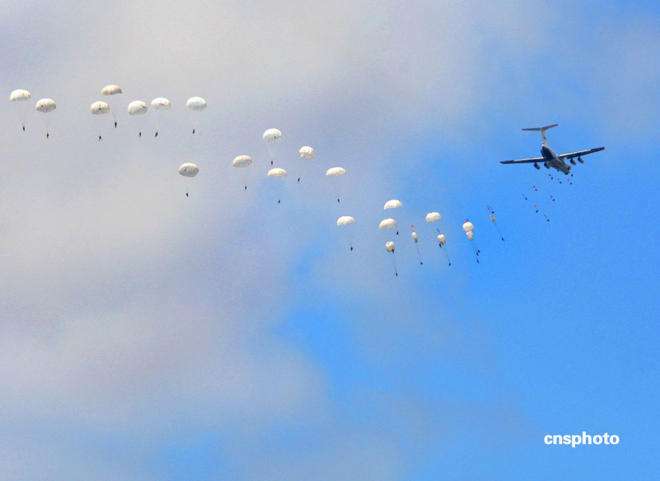 中國、俄羅斯兩軍總參謀長,7月23日上午到沈陽軍區(qū)洮南合同戰(zhàn)術(shù)訓(xùn)練基地,觀看“和平使命2009”聯(lián)合反恐軍事演習(xí)。雙方以陸軍和空軍為主,中方參演部隊包括1個陸軍戰(zhàn)斗群和1個空軍戰(zhàn)斗群。俄方參演兵力包括1個陸軍加強摩步營、1個空降突擊連和部分空軍兵力,雙方投入兵力兩千多人。中新社發(fā) 宋吉河 攝