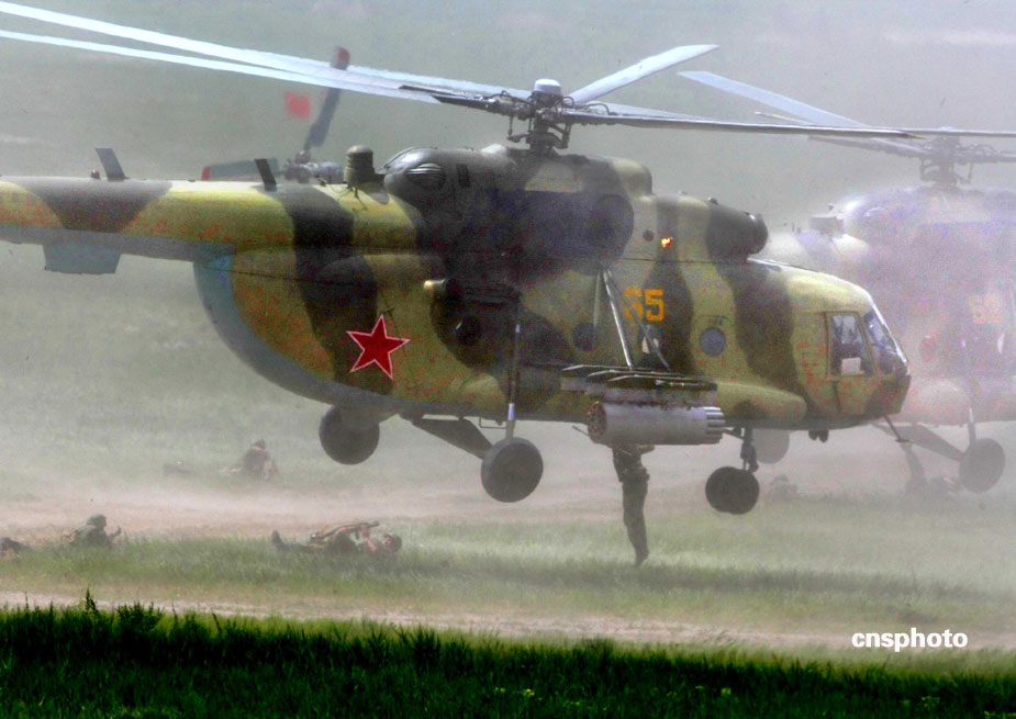 中國、俄羅斯兩軍總參謀長,7月23日上午到沈陽軍區(qū)洮南合同戰(zhàn)術(shù)訓(xùn)練基地,觀看“和平使命2009”聯(lián)合反恐軍事演習(xí)。雙方以陸軍和空軍為主,中方參演部隊(duì)包括1個(gè)陸軍戰(zhàn)斗群和1個(gè)空軍戰(zhàn)斗群。俄方參演兵力包括1個(gè)陸軍加強(qiáng)摩步營、1個(gè)空降突擊連和部分空軍兵力,雙方投入兵力兩千多人。中新社發(fā) 宋吉河 攝